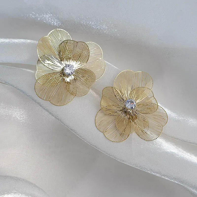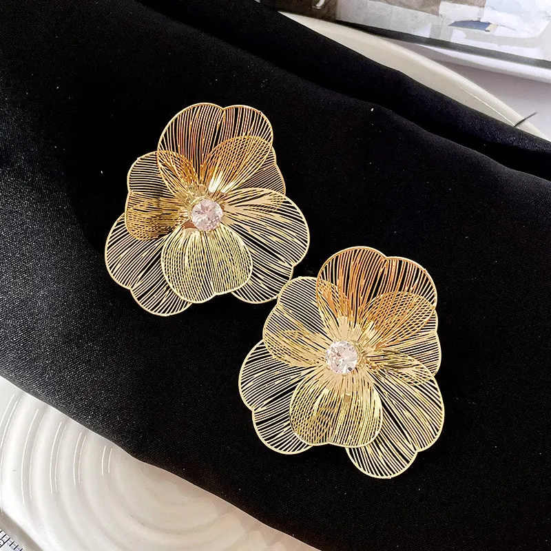 HomeAll products2024 Fashion Hollow Gold Color Metal Earrings for Women Large Exaggerated Flower Stud Earrings Jewelry Gifts Wholesale