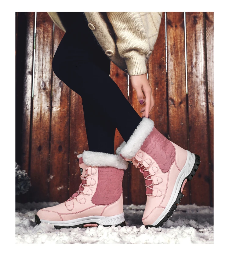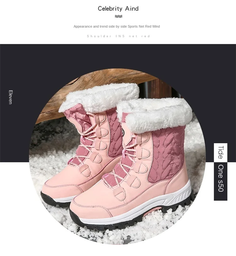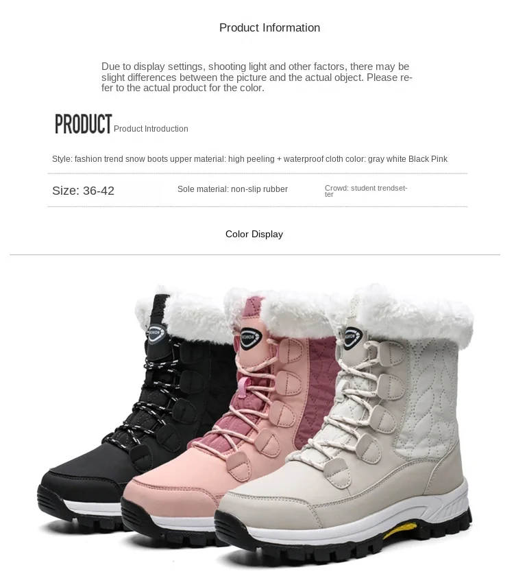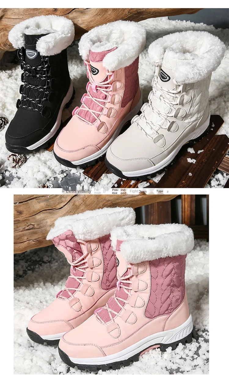 HomeAll productsNew Winter Women Boots High Quality Warm Snow Boots Lace-up Comfortable Ankle Boots Outdoor Black Rubber Sole Cotton Boots