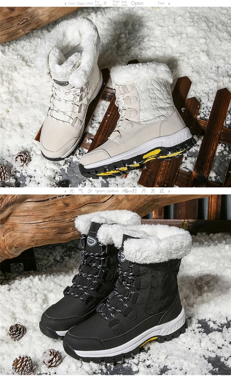 New Winter Women Boots High Quality Warm Snow Boots Lace-up Comfortable Ankle Boots Outdoor Black Rubber Sole Cotton Boots